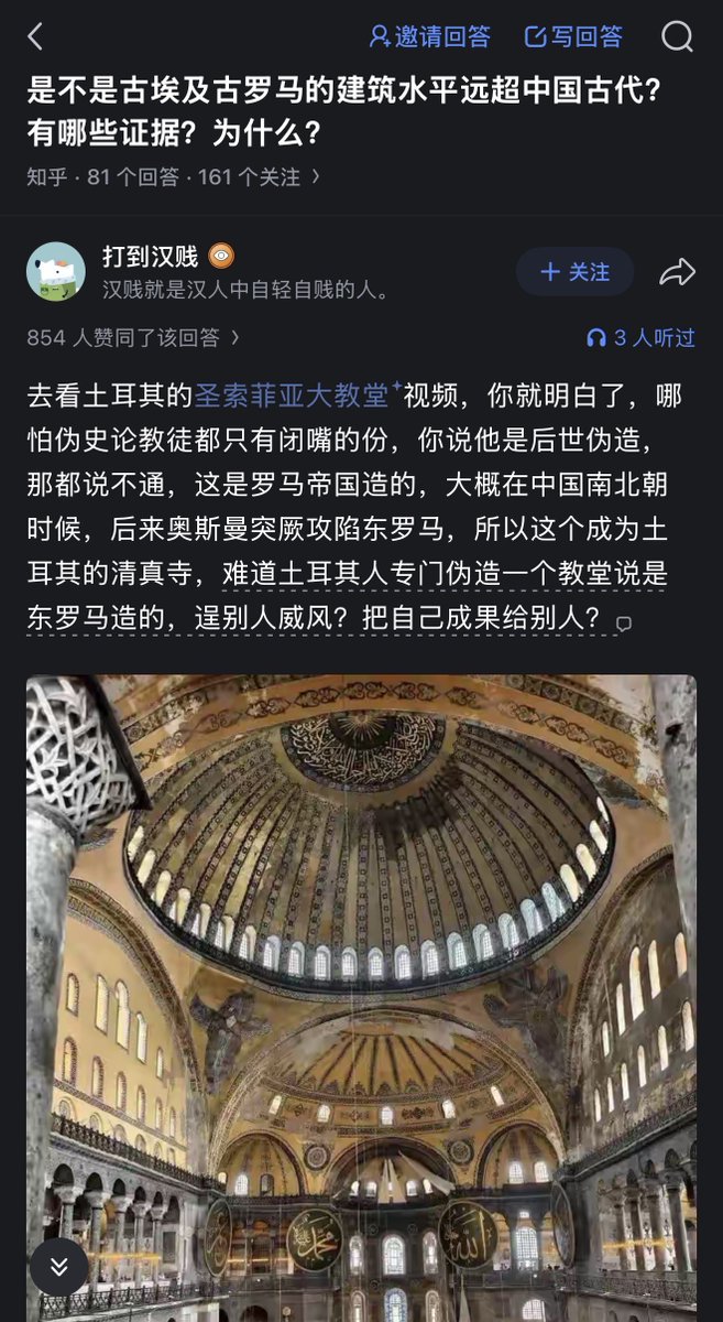 最近知乎上有一张图,说的是在南北朝时期土耳其就已经建好的圣索菲亚大教堂,穹高55米,顶下没有一根柱子,令人震撼。你不得不感慨宗教于人的力量,以及其对数学、建筑学的促进作用——绝非咱们中国人现在所理解的,穷人的迷信这么简单