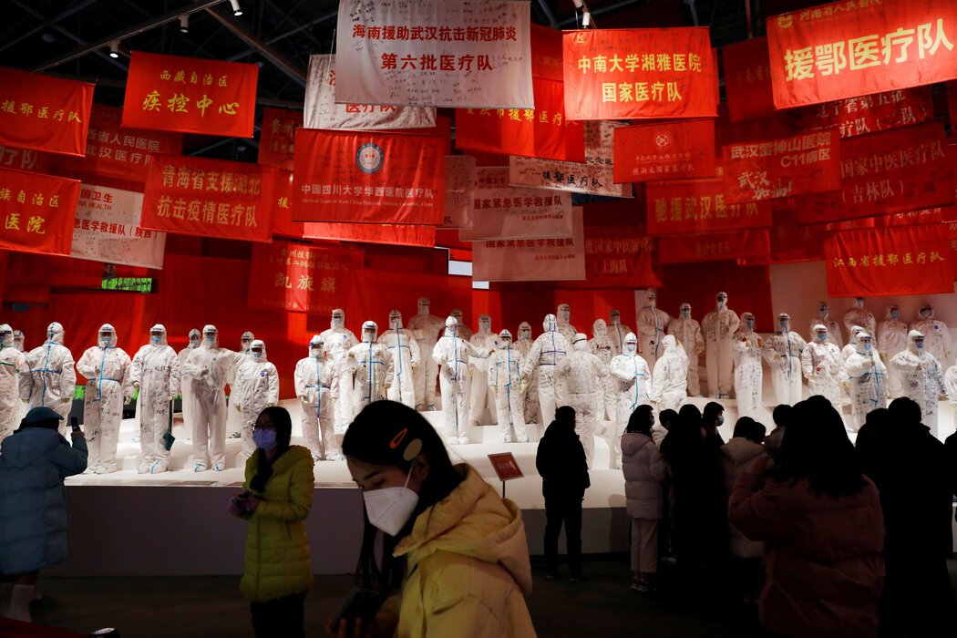武汉的一场展览纪念该市一年前抗击新冠疫情的事迹。 Tingshu Wang/Reuters