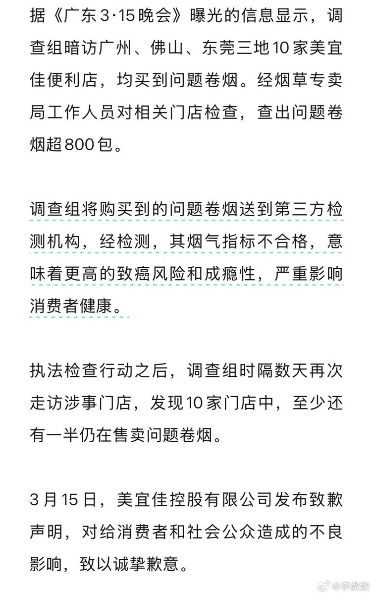 3月15日,全国多地美宜佳便利店被曝出售卖假烟。