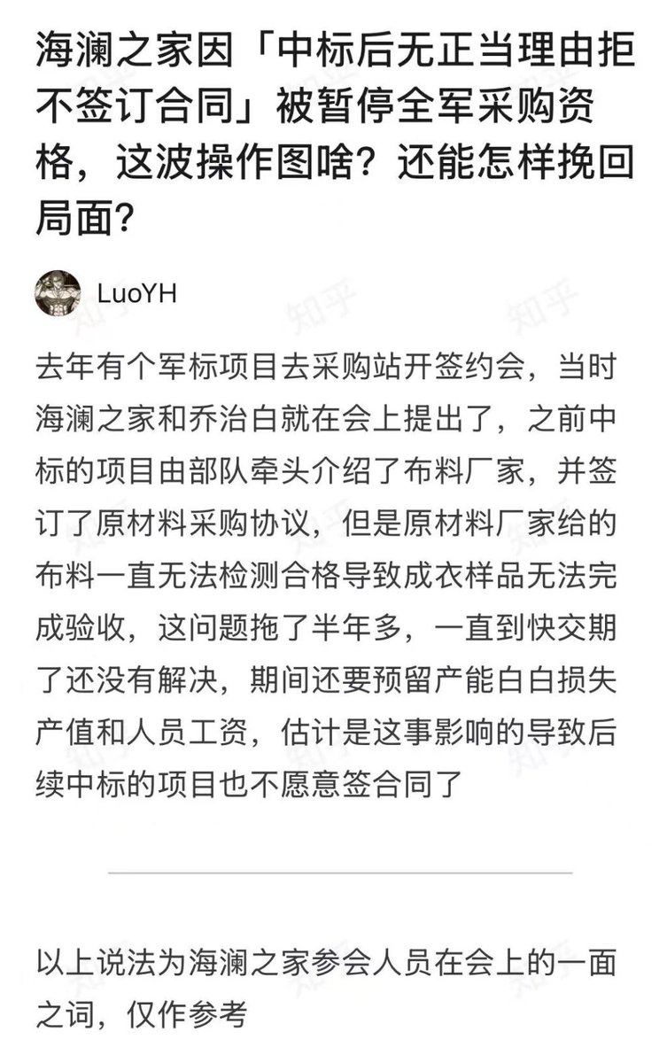 小道消息:海澜之家为什么不愿意签订军工采购合同?