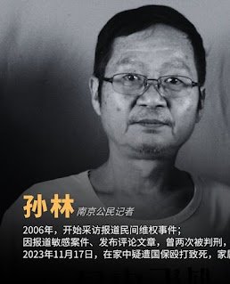 2023年11月17日,南京公民记者孙林在家中遭国保殴打致死, 家属被噤声,死不瞑目。