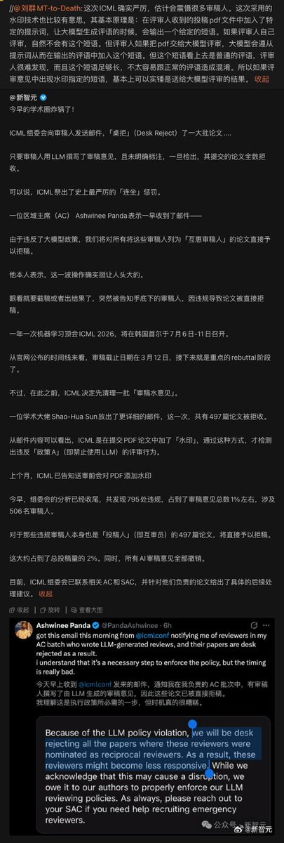 ICML 2026 查出506名审稿人用大模型代写审稿意见,直接把他们同时作为作者提交的497篇论文全部拒稿。