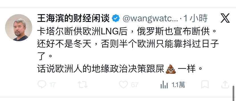 从2022年开始,欧洲每年冬季都要在X和微博上挨一波冻,按理说现在我们已经冻成冰雕连了