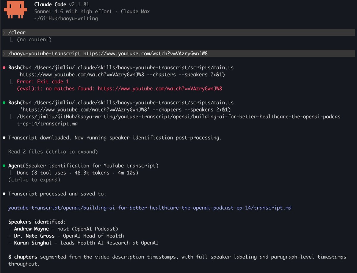 $ npx skills add https://t.co/GOjnWisJjw --skill baoyu-youtube-transcript