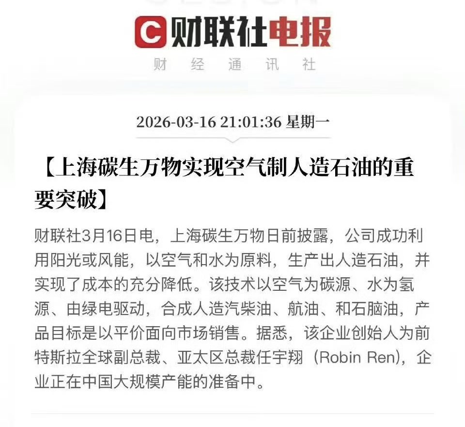 民斗但凡上过高中就知道从空气中捕捉二氧化碳合成石油不仅不是天方夜谭,而且是早就有了的技术。这东西问题是很难“平价推向市场”,除非原油涨到500美元,或者可控核聚变真成了发电不要钱。这公司画的饼大概是利用风光的弃电来搞航空煤油,信它不如买储能电池ETF.