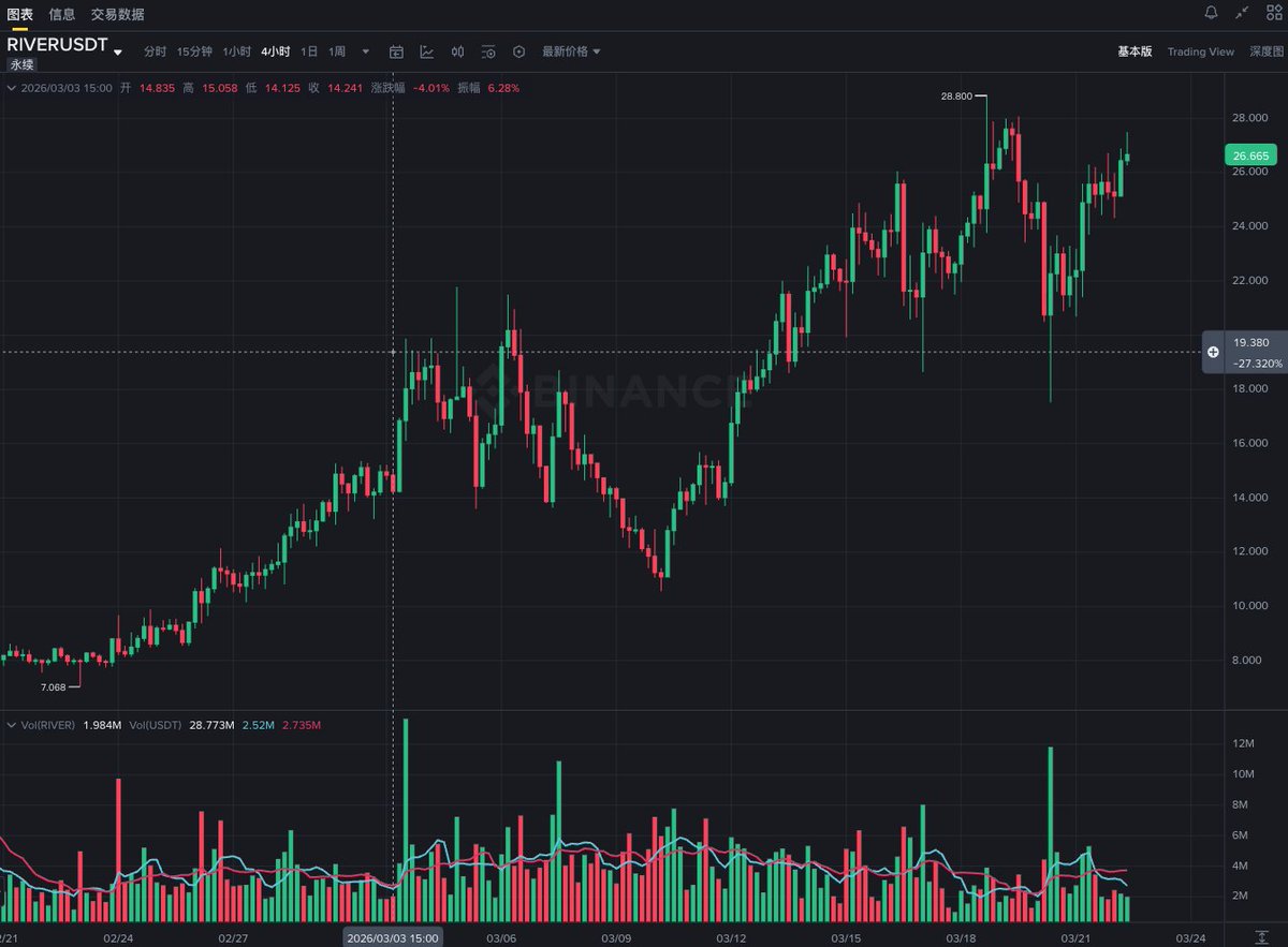 前几天我就在币安广场上看到好多人在做空 $River ,原因只有一个:3月22号有一笔解锁,当时就觉得好戏要来了。