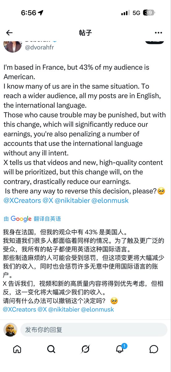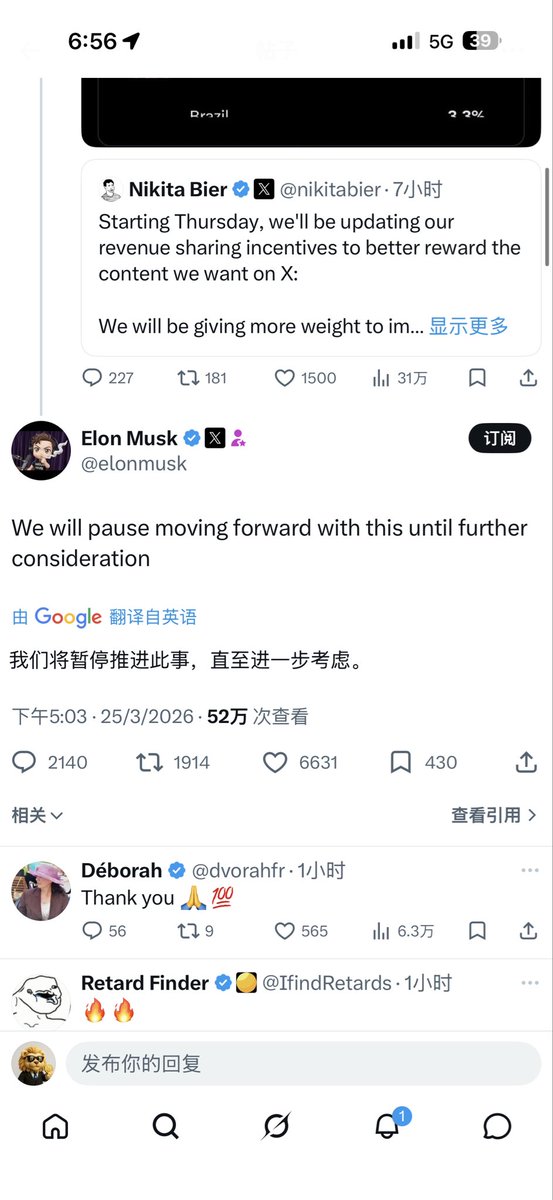 马斯克在看到一个法国推特博主的抱怨后直接回复要暂停Nikitta一拍脑门想出来的新政🥳🥳