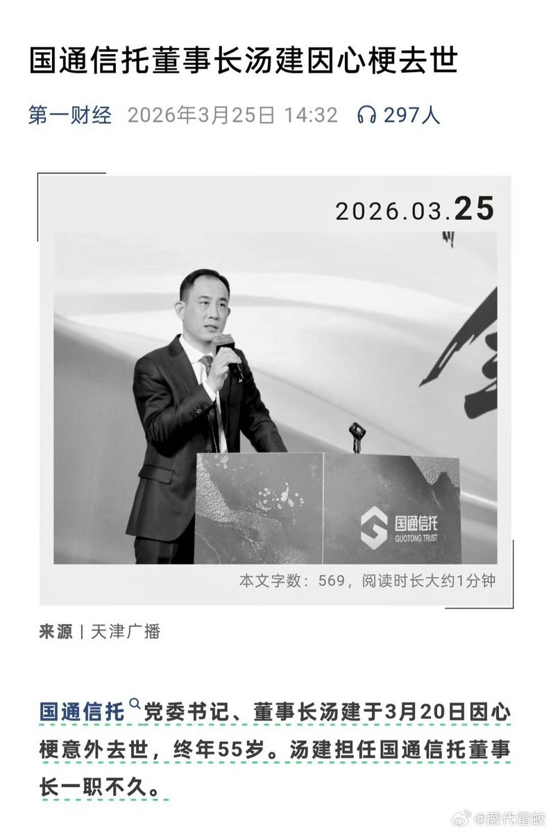 就在张雪峰去世前几天,成人内容平台OnlyFans的亿万富翁老板列昂尼德·拉德文斯基因癌症去世,享年43岁。 2月2日,百亿量化私募启林投资的创始人沈显兵与世长辞,享年40岁。 还有:浙江品控科技管理有限公司董事长张飞南因意外离世,终年40岁;云海肴创始人赵晗因突发心梗离世,年仅40岁… 3月20日,国投信托董事长汤健因心梗去世。