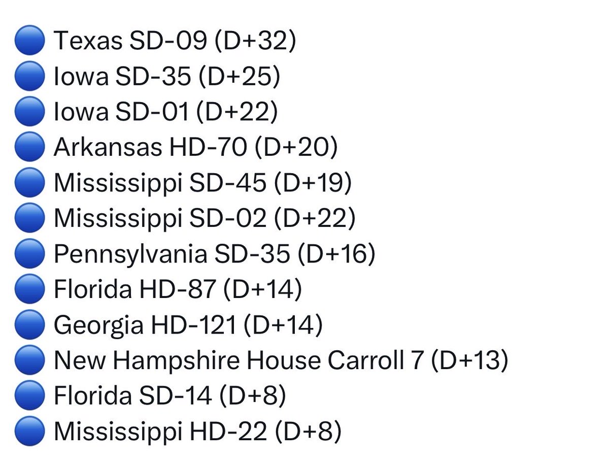 川普上台以来,民主党共翻盘了12个席位,且多为深红区,共和党翻盘数量为0。