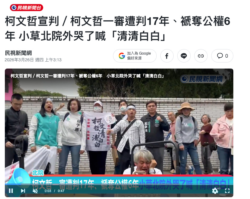 柯文哲一审,被判17年,剥夺政治权力6年柯文哲主要涉及京华城贪腐案(涉案金额约370万人民币)多项政治献金挪用案(涉案金额约1650万人民币)这个政治献金挪用指的是在民主社会资本,民众都是可以捐款给政客的但是这个捐款,只能作为竞选,党派运作资金