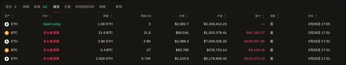 麻吉过去半小时内被清算 48.6 枚 BTC 和 6,720 枚 ETH,亏损 42.3 万美元