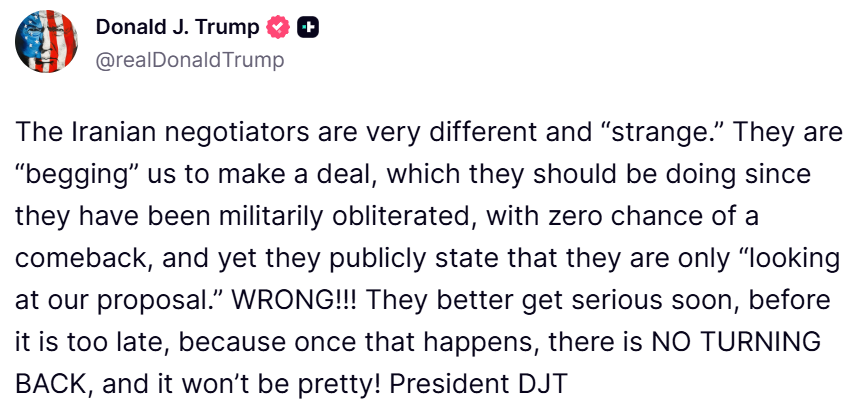 BREAKING: Trump says Iranian negotiators are 'begging' for a deal