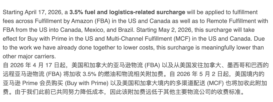突发消息:由于原油价格大涨,亚马逊加征至少3.5%的燃油附加费