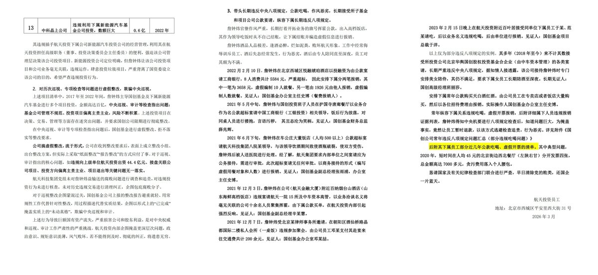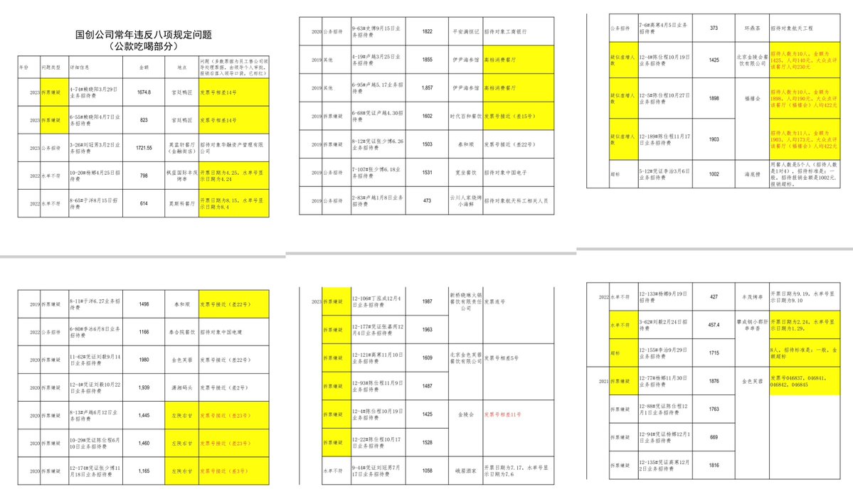 3)长期违反中央八项规定精神,存在公款吃喝、违规宴请、虚假报销、作风问题严重,举报材料中中给出了长达15页PDF的作证材料