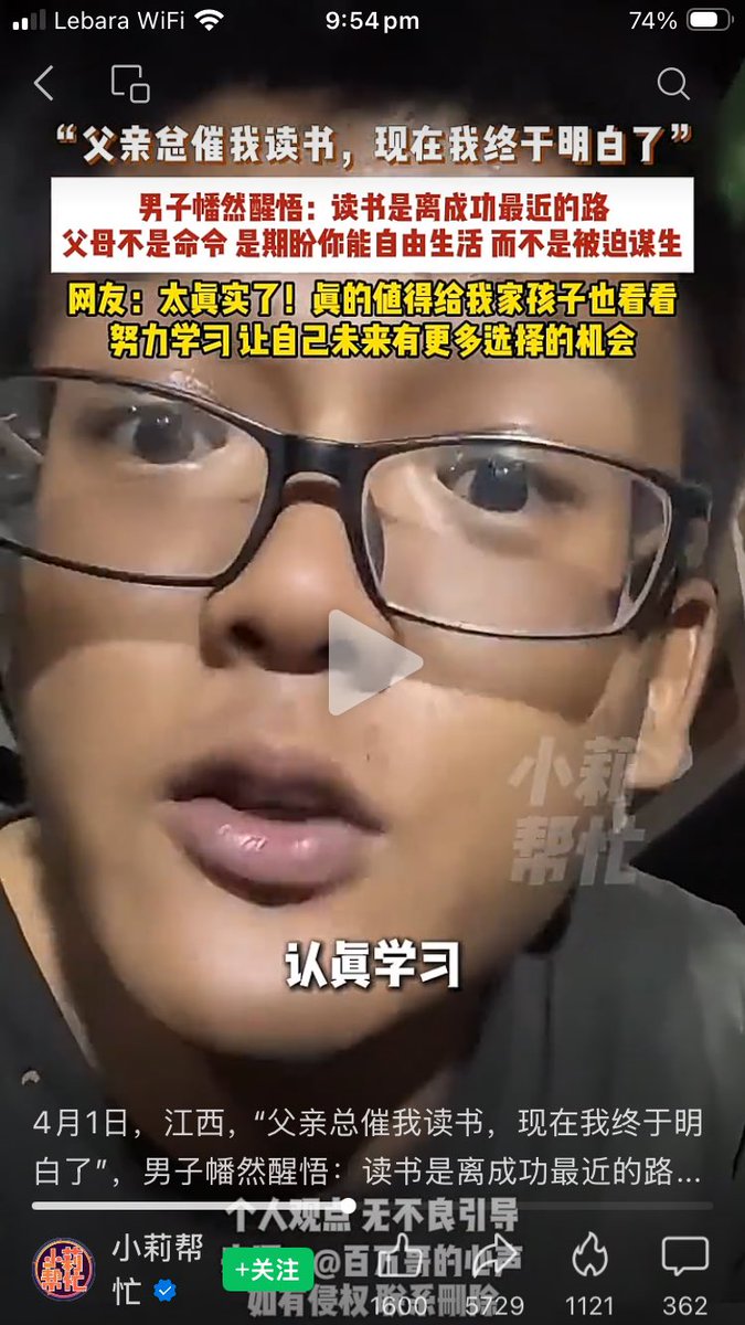 闹钟人这认知咋这么类似呢,我上回回国,和村里的几个当年一起钓龙虾的小伙伴吃饭,喝了点马尿以后,一个个开始感叹自己当年不好好读书,现在在打零工送外卖彻底失败。