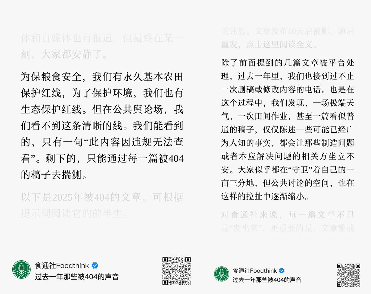近日,长期关注和报道中国底层民生问题的媒体《食通社》总结了过去一年被删除的报道。