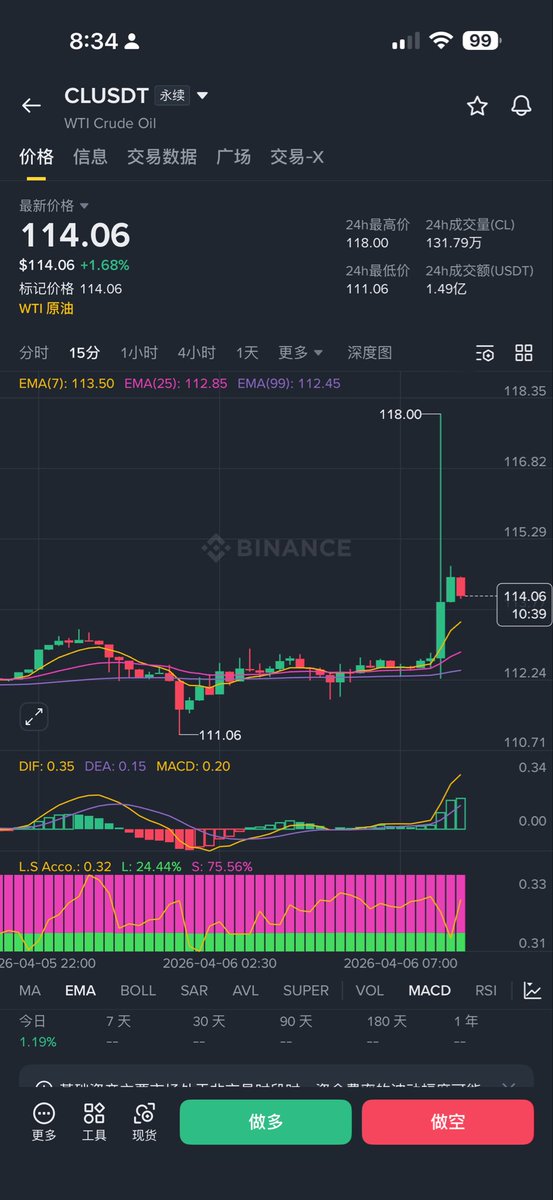 现在这原油走的真刺激,波动性嘎嘎的,还能通过分析新闻和其他基本面做一定的逻辑判断,感觉比山寨币还好玩。小仓位我就直接币安上玩了,毕竟界面熟悉,如果仓位大就去hyperliquid ,基本不用担心滑点和深度。