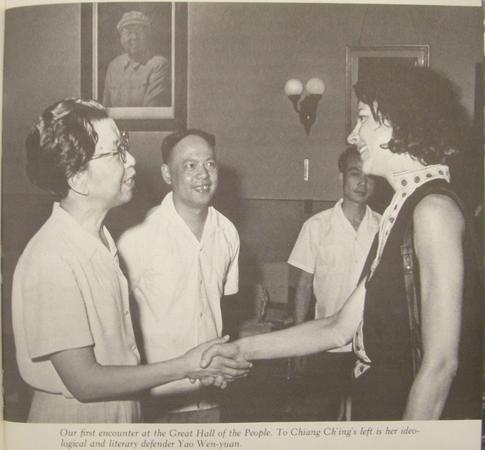 江青:“你不是想了解我个人的生活吗?哈哈,你别看我现在领导着全国文化大革命,从前呀,我年轻的时候,可是富于感情的,我个人的生活是非常罗曼蒂克的。中国的女人都背着封建主义的包袱,我可不背,我自己要怎样做就怎样做。明天和后天我会详细地对你讲,今晚我讲点小故事吧。我最 喜欢上海,你们外国人说那是冒险家的乐园,有点道理。上海的小调我都喜欢,那真是非常有味道,我还唱哩,唱给你听听……”于是江青细声细气地哼起了上海小调:“我呀我的小妹妹哩,舍不舍不得离……咿呵呀嗬唉……哈哈,哈哈,哈哈哈。”