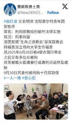 #中国人权 #每日一推 #良心犯 第301期:沈阳赛特尔团契牧师曲红波及同工狱中惨遭酷刑