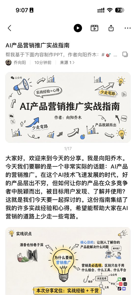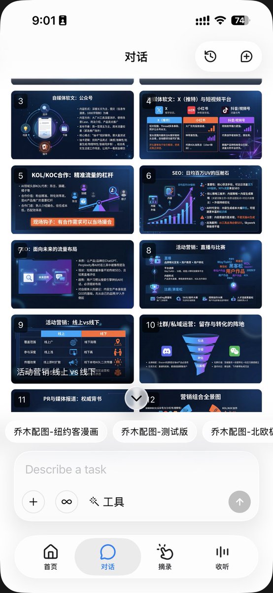 3)打开youmind或listenhub的iOS客户端,让基于PPT大纲生成即可。