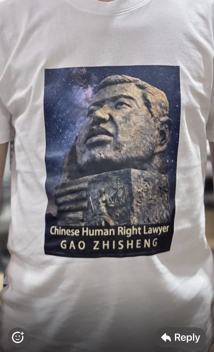 义工们好, 衷心感谢你们为《仰望星空·高智晟》雕塑揭幕仪式付出的辛勤努力与无私奉献! 在此,特别感谢负责售卖 T-shirt 的女义工们。你们用耐心与责任,让每一件衣服有了温度,并承载着我们的爱传递出去,也让 T-shirt 和高智晟的故事传递得更长远。T-shirt 几乎全部售罄(仅剩少量特大号)。为了坚守岗位,你们甚至错过了现场嘉宾精彩的演讲,这份默默付出令人动容。 本次义卖及捐款共计约 $11,000 元已全部如数捐赠给雕塑公园。 耿和 4.4.26.