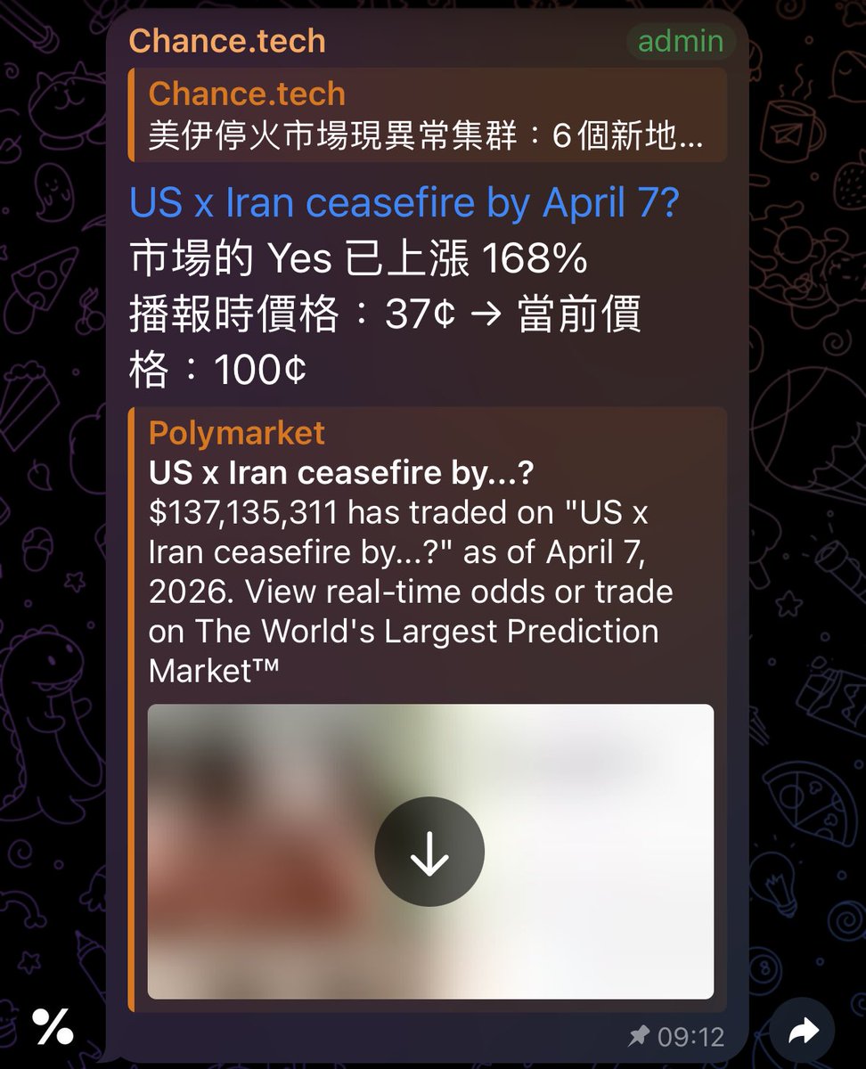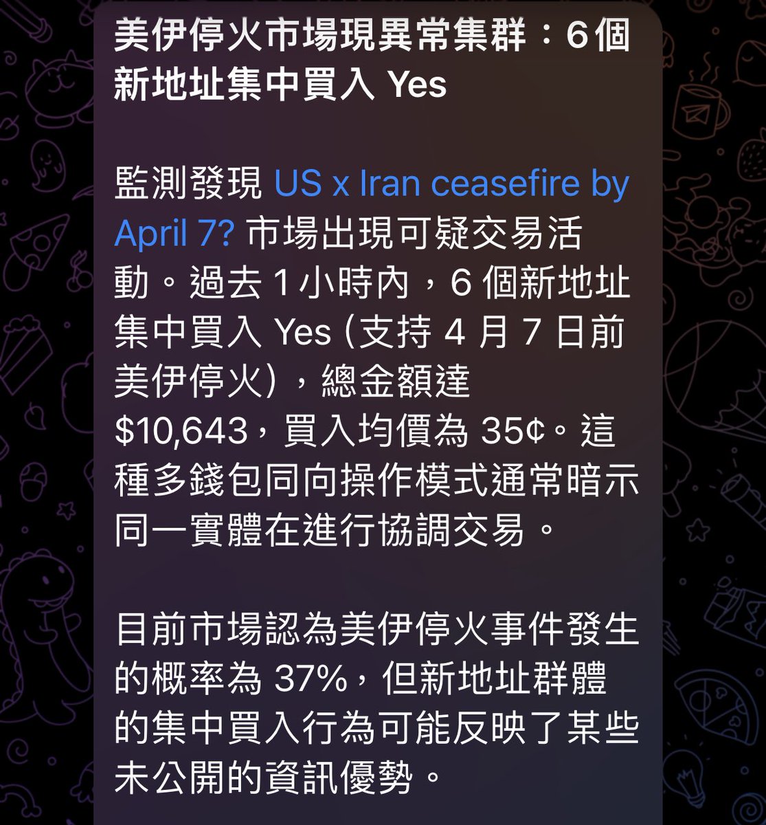 6個新地址在過去一小時快速買入1wU押注美伊在4/7前停火