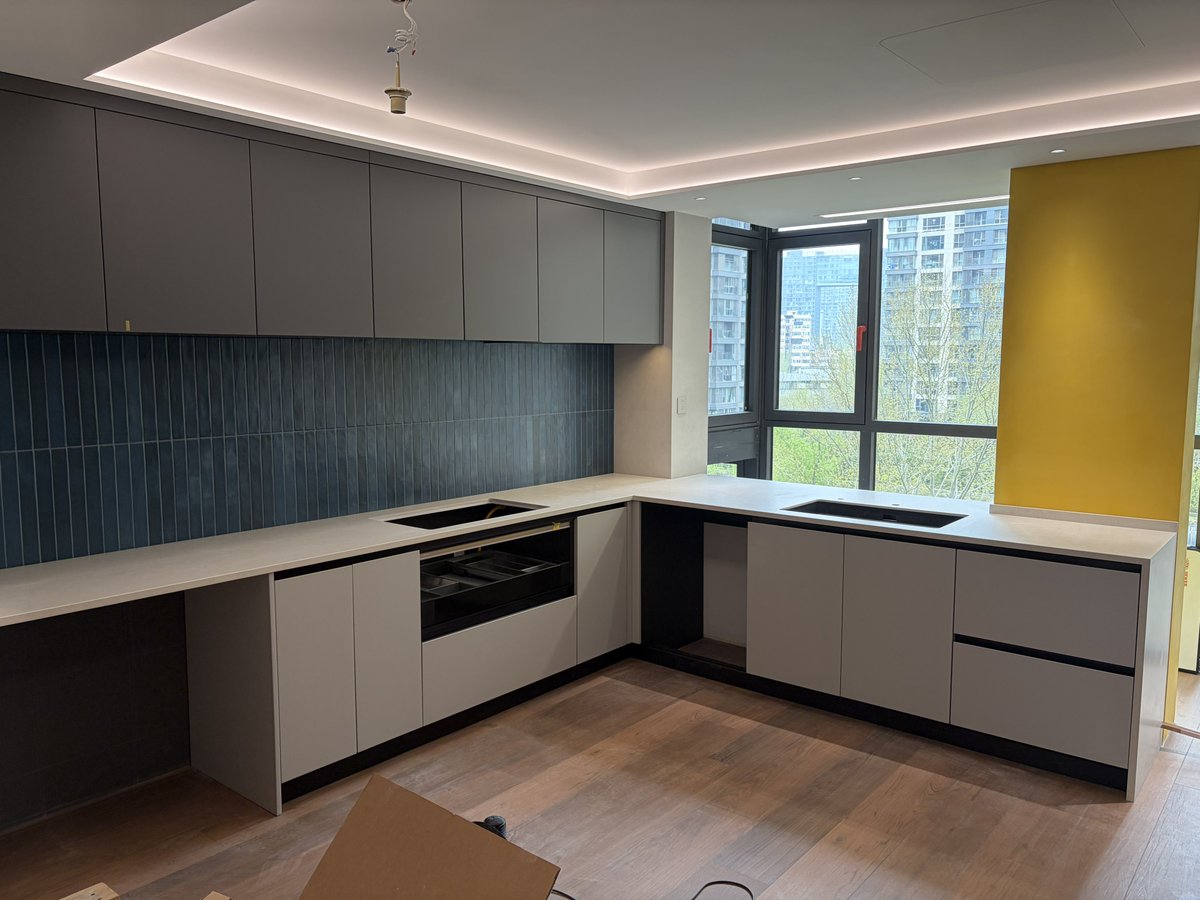 #装修日记 遇到专业的人办事就是神清气爽,橱柜岩板设计师来测量,现场仔细测量各种尺寸和角度,和我讨论如何切分和收边,以及考察运输路径上如电梯的大小,如何尽量减少拼接,现场足足折腾了一个小时,然后晚上给出详细的图纸。