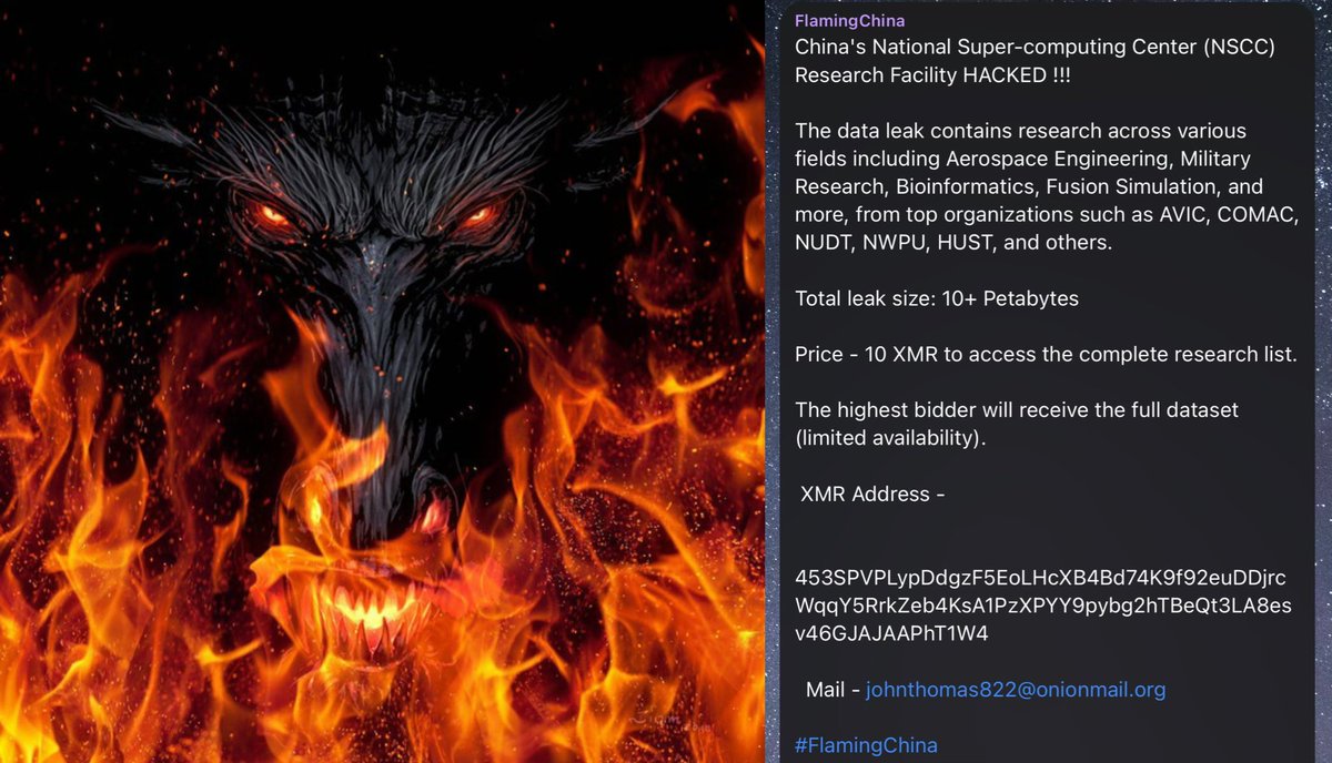 They go by "FlamingChina" online and reached out to a cybersecurity researcher (Marc Hofer) via Telegram to sell the 10+ petabytes of data for crypto. No evidence they were "sent" by anyone; looks like a profit-driven breach.