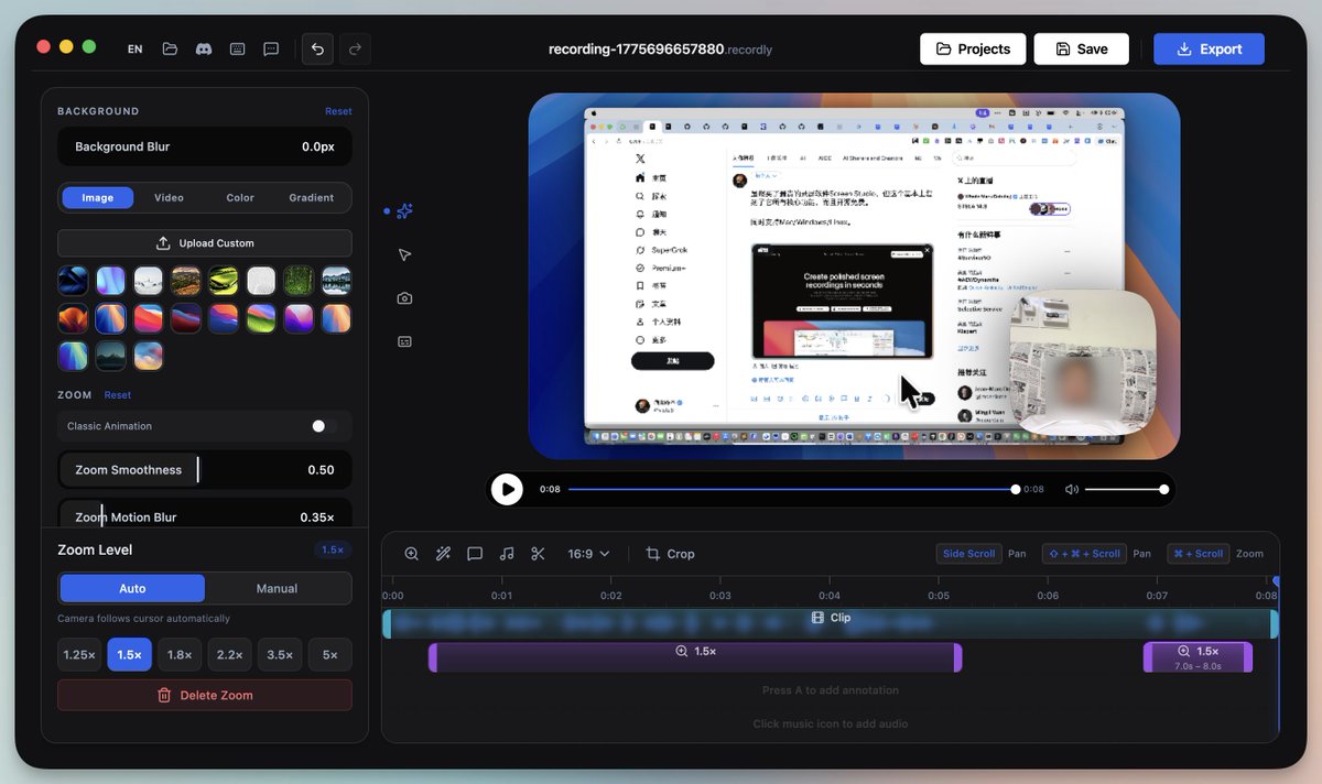 最贵缩放录屏软件Screen Studio,核心功能被Recordly复刻,完全免费开源!