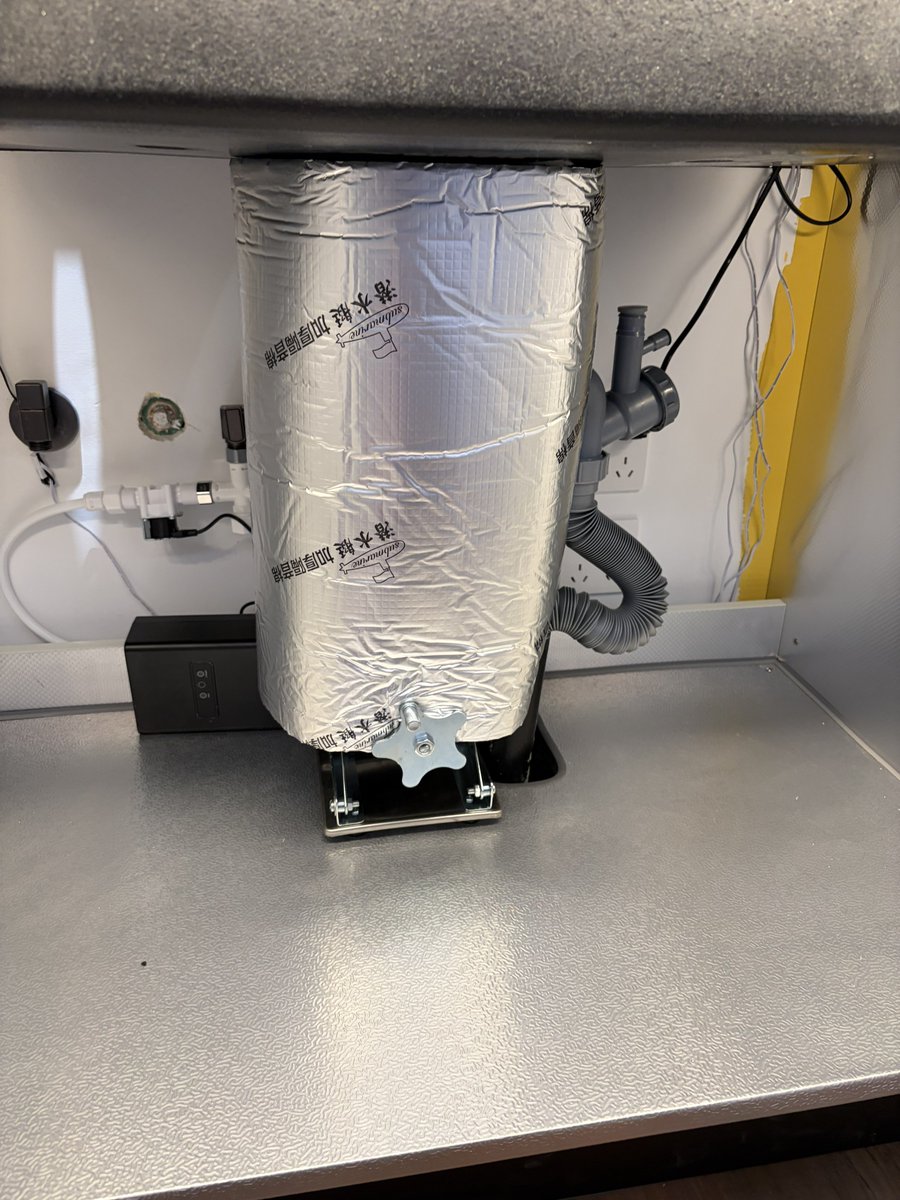 #生活技巧 霍尼韦尔这款垃圾处理器装上了,不过运转起来噪音略有点大,主要是有一个非常刺耳的高频噪音,正好想起来之前买的管道消音棉还有剩余,包上去之后好多了。