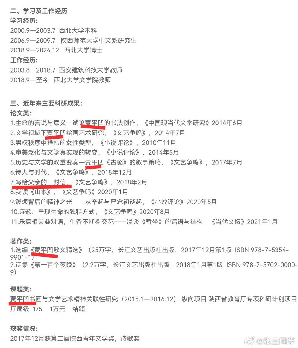 近期,博主“抒情的森林”发帖称,西北大学副教授贾浅浅2014年发表的学术论文《文学视阈下贾平凹绘画艺术研究》与四位不同作者的文章存在相似之处,却未规范标注出处。 另一篇论文中关于贾平凹书法艺术的描述,更是直接复制了父亲贾平凹1994年评价他人书法作品的文字,仅做了个别词语的修改。