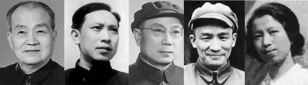 图:延安時期毛澤東的五大秘書(自左起)胡喬木、田家英、葉子龍、陳伯達、江青