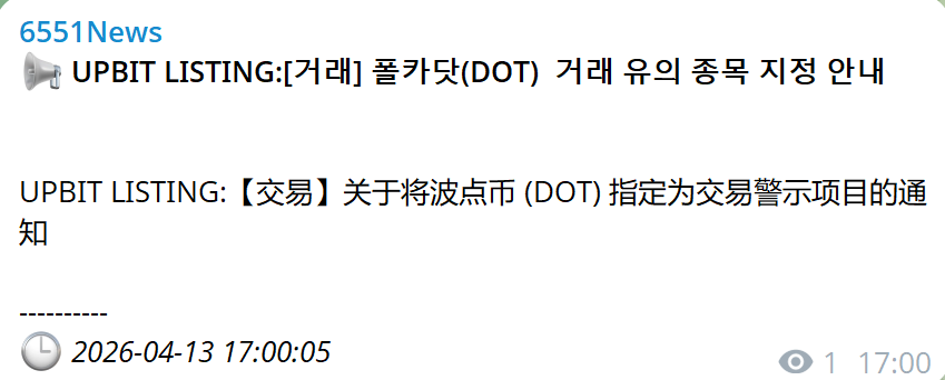 $dot 被UPBIT列为警示项目,时代的眼泪。