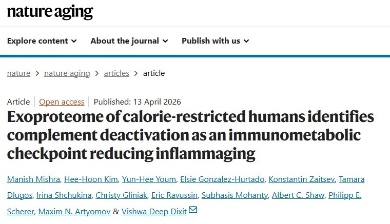 2026年4月13日,美国耶鲁大学医学院研究团队在《Nature Aging》期刊上发表最新研究成果。