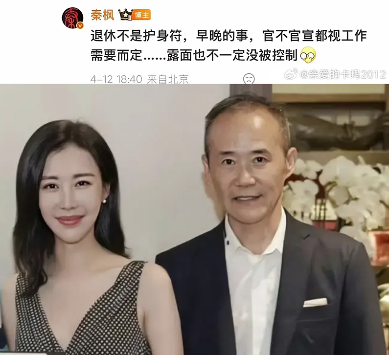 4月12日,凤凰卫视前记者秦枫,在评论区回复关于“王石被抓传闻”:“退休不是护身符,早晚的事,官不官宣都视工作需要而定....露面也不一定没被控制”