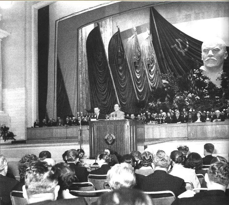 图:毛泽东在苏联最高苏维埃庆祝十月革命四十周年会上讲话