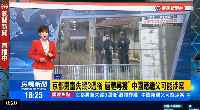 日男童失踪,京都出生的日本人继父涉案,台湾民视立刻无中生有编造说是“中国籍继父”。大陆人对台湾人的看法一点点变差,不是没理由的。太民族主义之后,在什么地方都会很难看。
