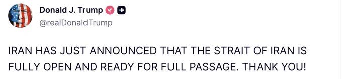 伊朗刚刚宣布,伊朗海峡完全开放,可全面通行。
