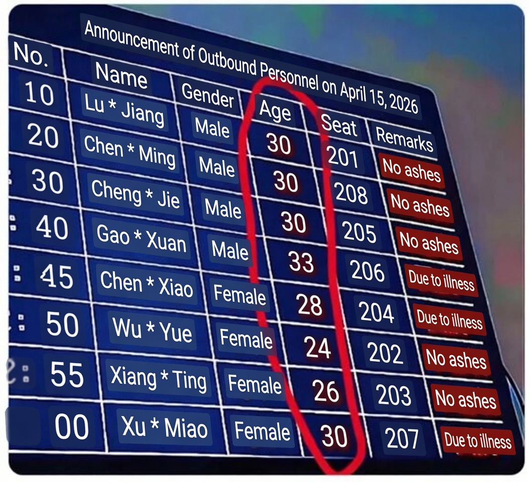 On April 15, a mainland Chinese netizen took a shocking photo at a funeral home. The deceased were all young people aged 24 to 30 (see Table 1 in the image and its English translation). Moreover, most of the remarks noted “No ashes wanted”!