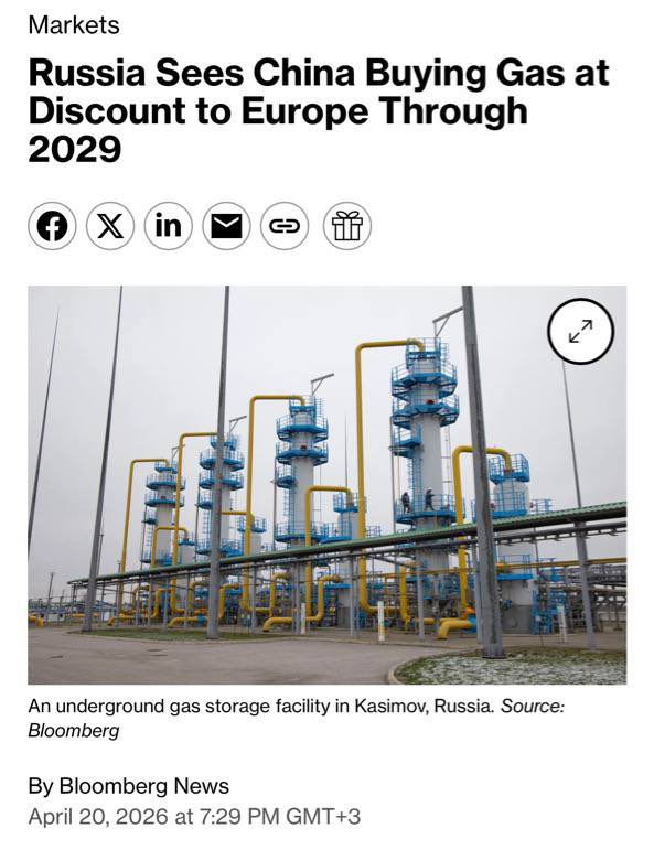 俄羅斯政府預計向中國出售天然氣的價格將比歐洲支付的價格低約三分之一,