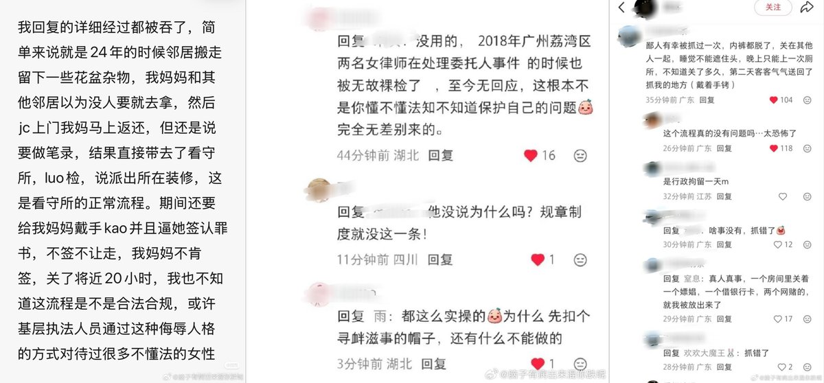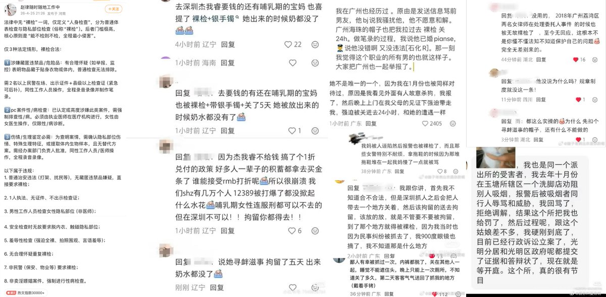 深圳女子劝阻路边男子吸烟,事后遭到警方裸检后,大量网友们纷纷发表自己曾遭到裸检的经历,甚至有网友怀疑这是否有获利产业链。